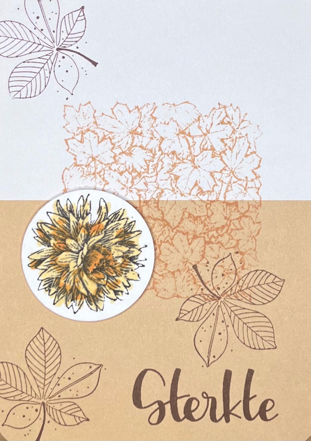 Enkele kaart op dik papier in herfstkleuren. Inclusief envelop. Goed beschrijfbaar op de achterkant.